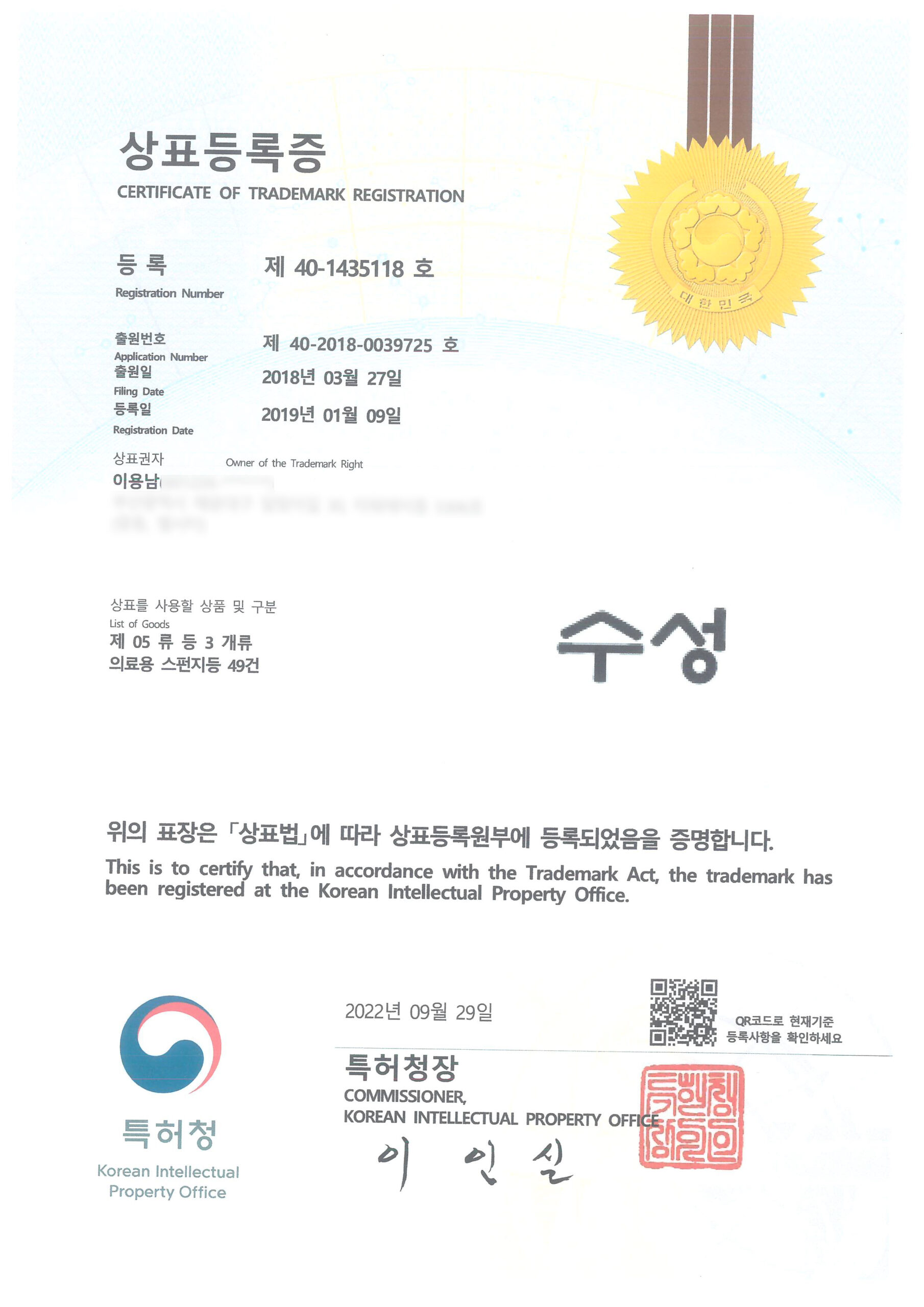 상표등록증 : 수성