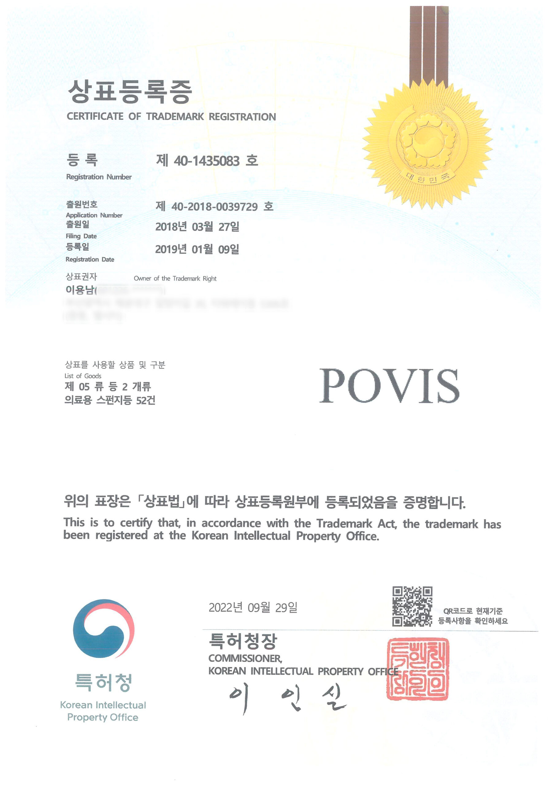 상표등록증 : POVIS
