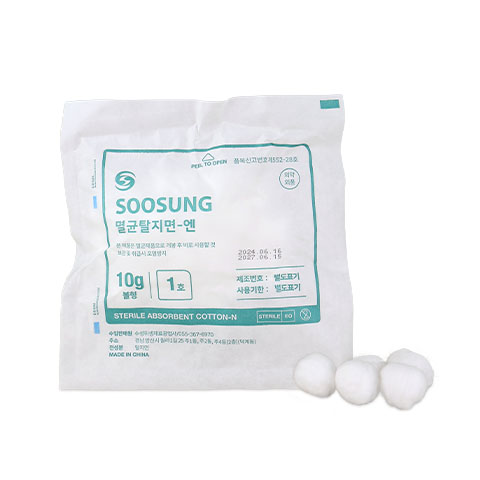 탈지면(볼형, 필터형)을 규격별로 생산하여 밀봉용기(Pouch bag)에 자동 포장하여 멸균한 제품